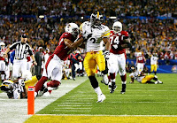 Okay, still over two and a half minutes left...who is the ONE player you don't want to let beat you if you are a Steeler? Maybe some guy named Larry Fitzgerald? Quick slant, safeties jump the out routs, Fitzgerald outruns the entire defense and boom the Cardinals have a 23-20 lead. Ouch...